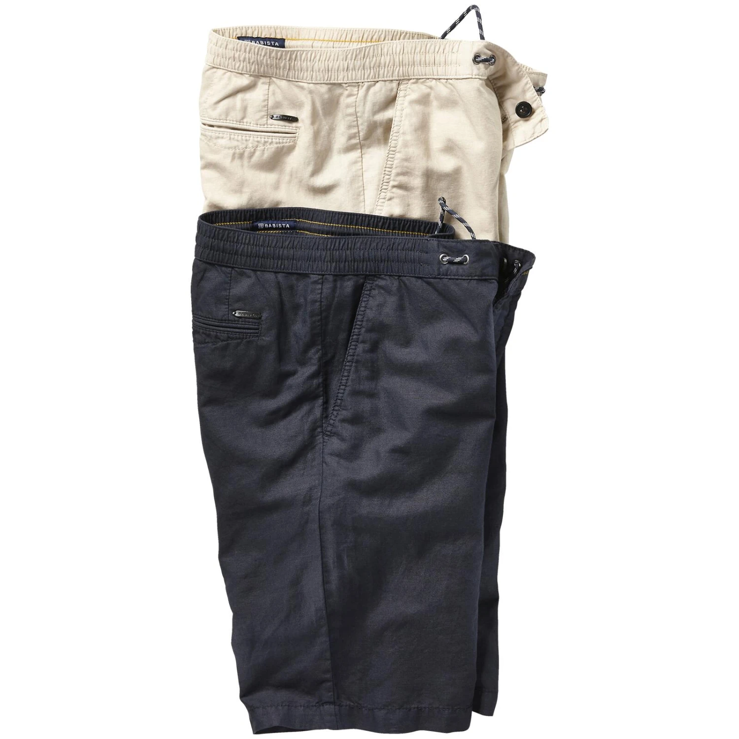 In Bermuda VIENTINO sind Sie luftig und schick unterwegs und können dabei höchsten Komfort genießen. Der bequeme Dehnbund kann ganz einfach mit Knopf und Reißverschluss verschlossen werden und verfügt über einen versteckten Kordelzug, sodass ein gemütliches Tragegefühl gewährleistet ist. Hinten gibt es zwei Gesäßtaschen und seitlich finden sich Eingrifftaschen, was das stilvolle Design um einen praktischen Aspekt erweitert. Bermuda VIENTINO ist einfach die perfekte Hose für einen eleganten Sommer, ob in der Stadt oder am Meer.