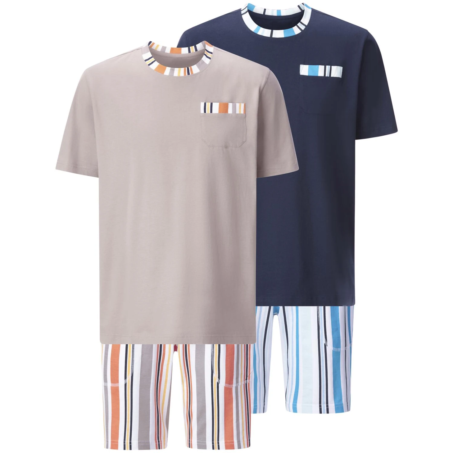 Machen Sie sich bereit für mehr als eine stilvolle Nacht in Schlafanzug VERIANO im Doppelpack. Das Oberteil mit klassischem Rundhalsausschnitt weist einige gemusterte Partien auf und sieht dadurch absolut modisch aus. Eine praktische Tasche auf der Brust ergänzt den Look. Eingrifftaschen finden sich auch seitlich an der gemusterten Hose des Zweiteilers, die dank des elastischen Bunds angenehm bequem wird. Holen Sie sich also direkt zwei Mal VERIANO ins Haus und genießen Sie den Komfort eines richtig guten Schlafoutfits.