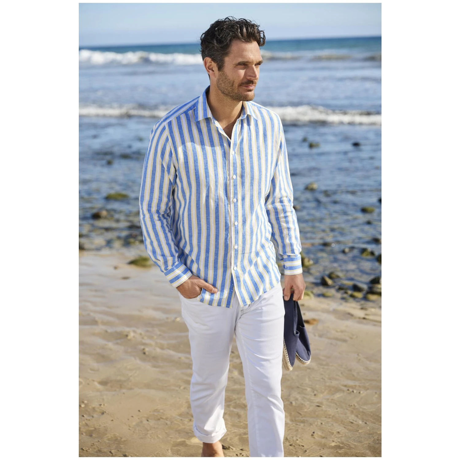 Das Hemd MARELONA ist ein wahrer Garant für einen gepflegten Auftritt: Der klassische Kentkragen und die zeitlose Farbgebung machen dieses Oberteil perfekt für Büro, gehobene Anlässe oder auch einfach einen stilvollen Freizeitlook. Das Muster aus unregelmäßigen Längsstreifen liegt irgendwo zwischen maritimem Flair und elegantem Alleskönner. In Hemd MARELONA kann in Sachen Eleganz also garantiert nichts schiefgehen.