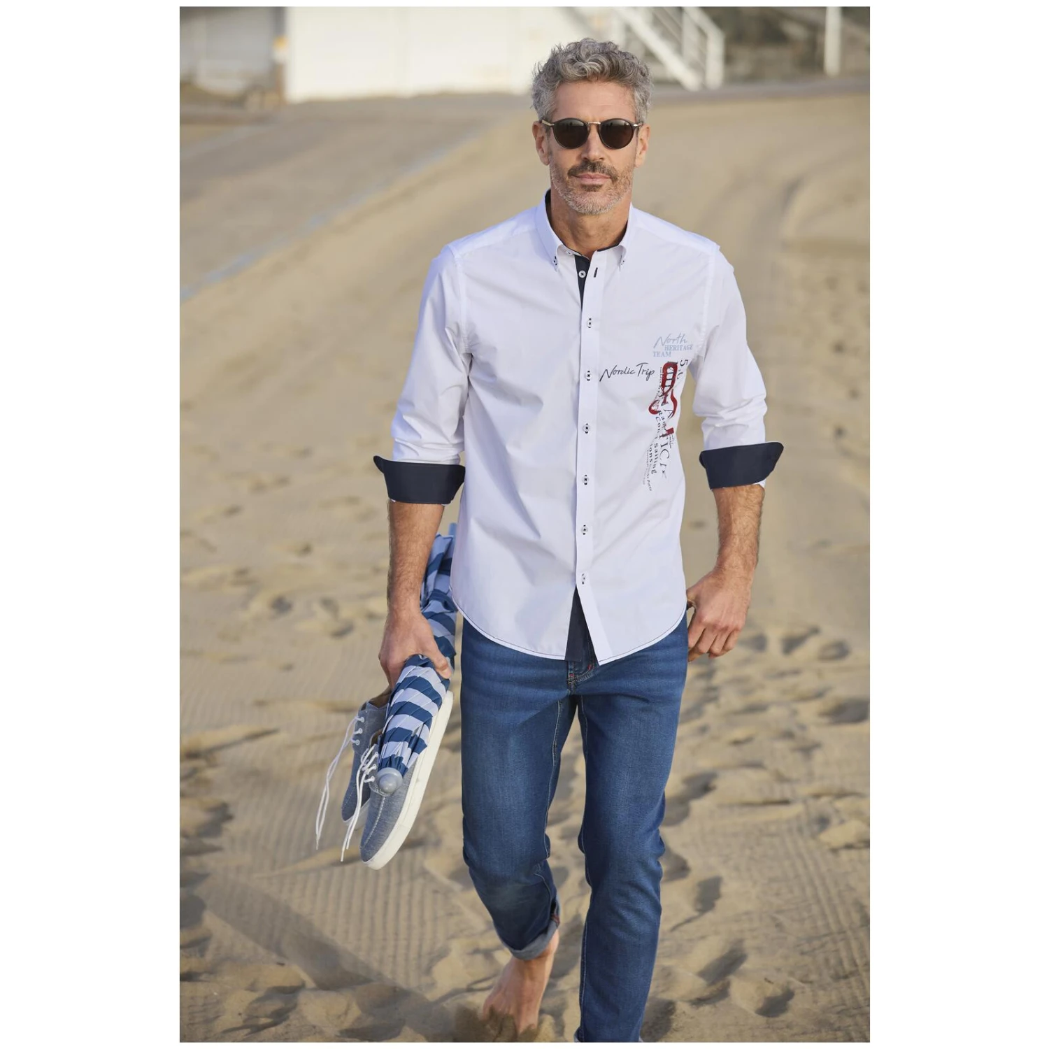 Hier kommt der Ausdruck purer Lässigkeit: Hemd MARINANO ist die perfekte Mischung aus leger und klassisch. Das Hemd hat einen gepflegten Button-Down-Kragen, der für einen aufgeräumten Look sorgt. Ein modischer Print auf der linken Seite bringt einen Hauch von Moderne und Nonchalance mit ein. Die Kontraste am Untertritt und der Innenseite der umschlagbaren Ärmelmanschetten bringen geschmackvolle Farbtupfer mit ein, die das Design gekonnt abrunden. Mit Hemd MARINANO bekommen Sie das perfekte Oberteil für jeden legeren Anlass.