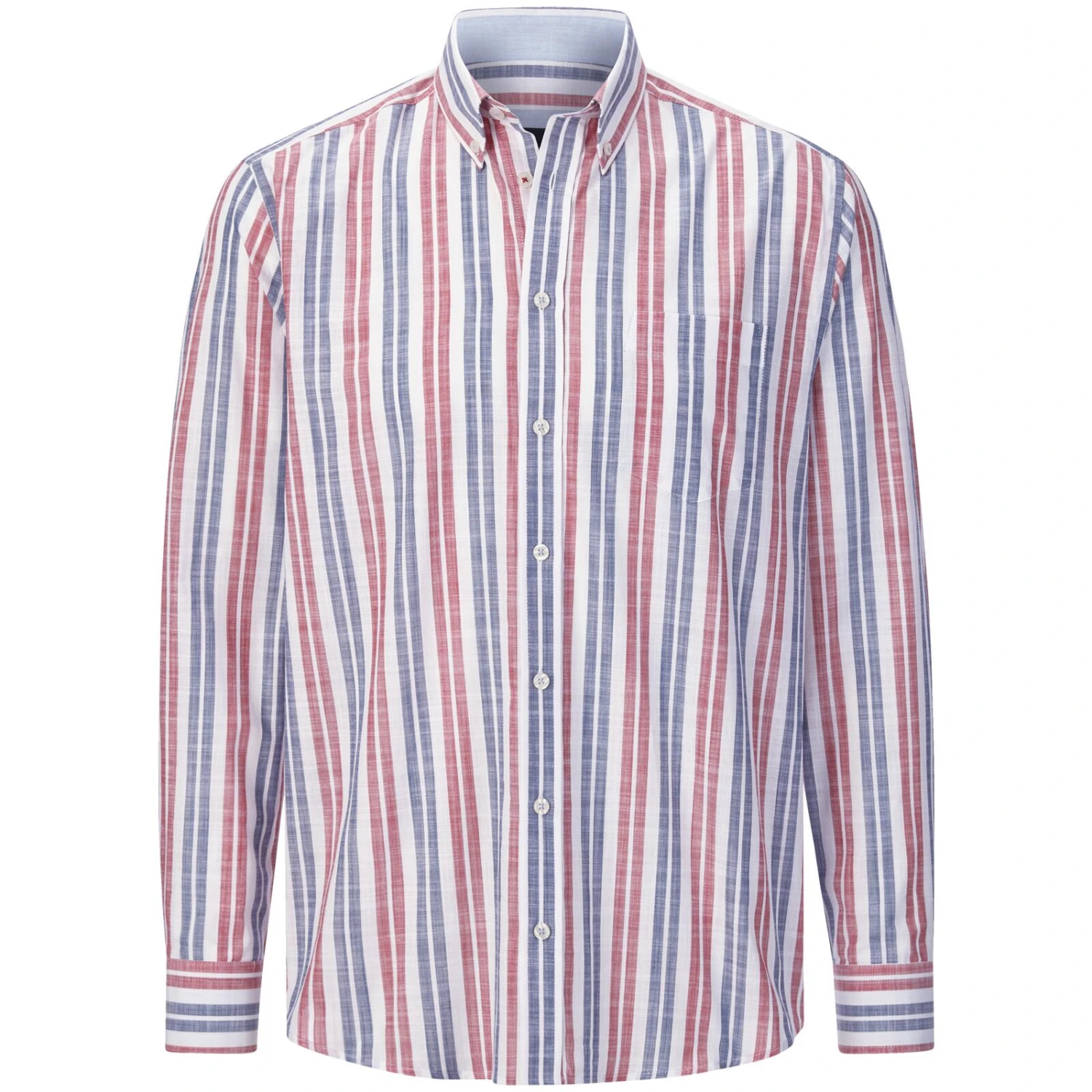 Das Hemd MARINETTO ist ein wahrer Klassiker in neuem Gewand. Der gepflegte Button-Down-Kragen, die praktische Brusttasche und die Knöpfe an den umschlagbaren Ärmelmanschetten bilden den zeitlosen Rahmen für das wahre Highlight des Oberteils: Das harmonische Farbspiel aus aufgeräumten Längsstreifen in fröhlichen Tönen. Der leicht maritime Look, der garantiert für gute Laune sorgt, ist die perfekte Wahl für alle, die Ihre Freizeit gern mit Stil begehen. Also holen Sie sich mit Hemd MARINETTO ordentlich Schwung in Ihren Kleiderschrank.