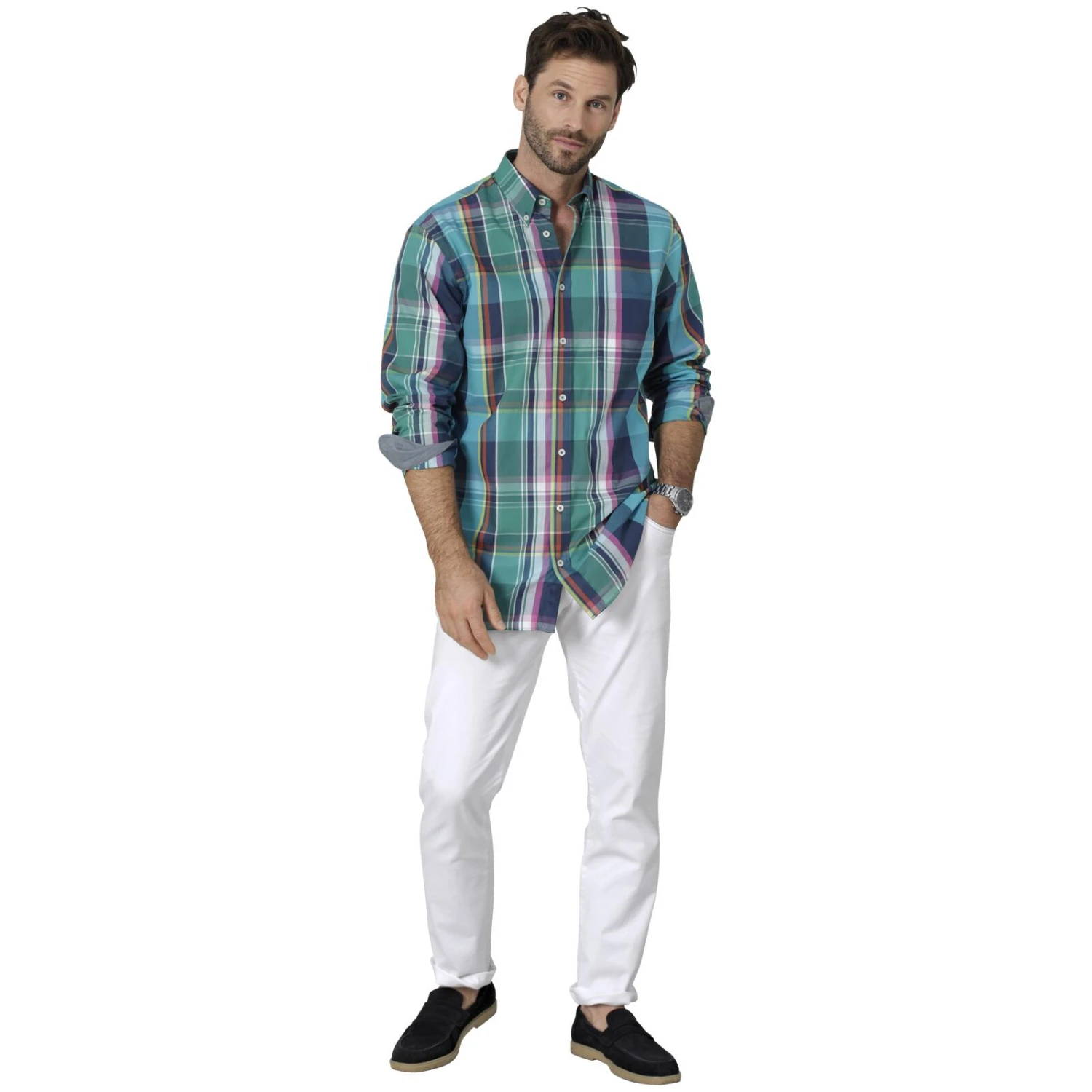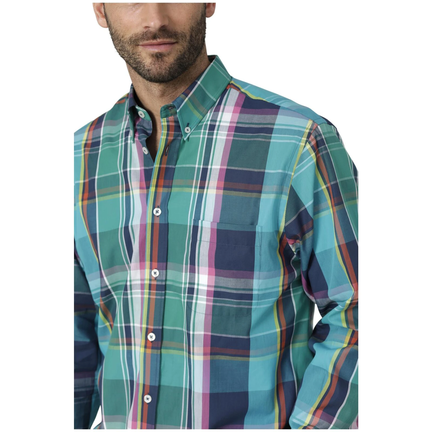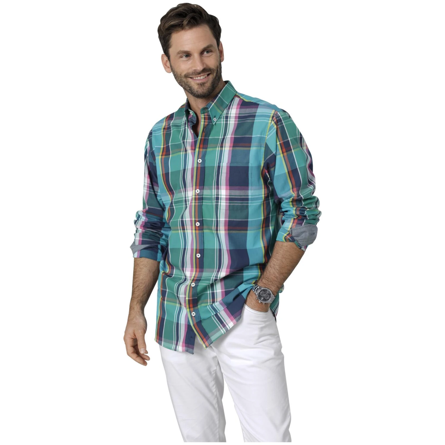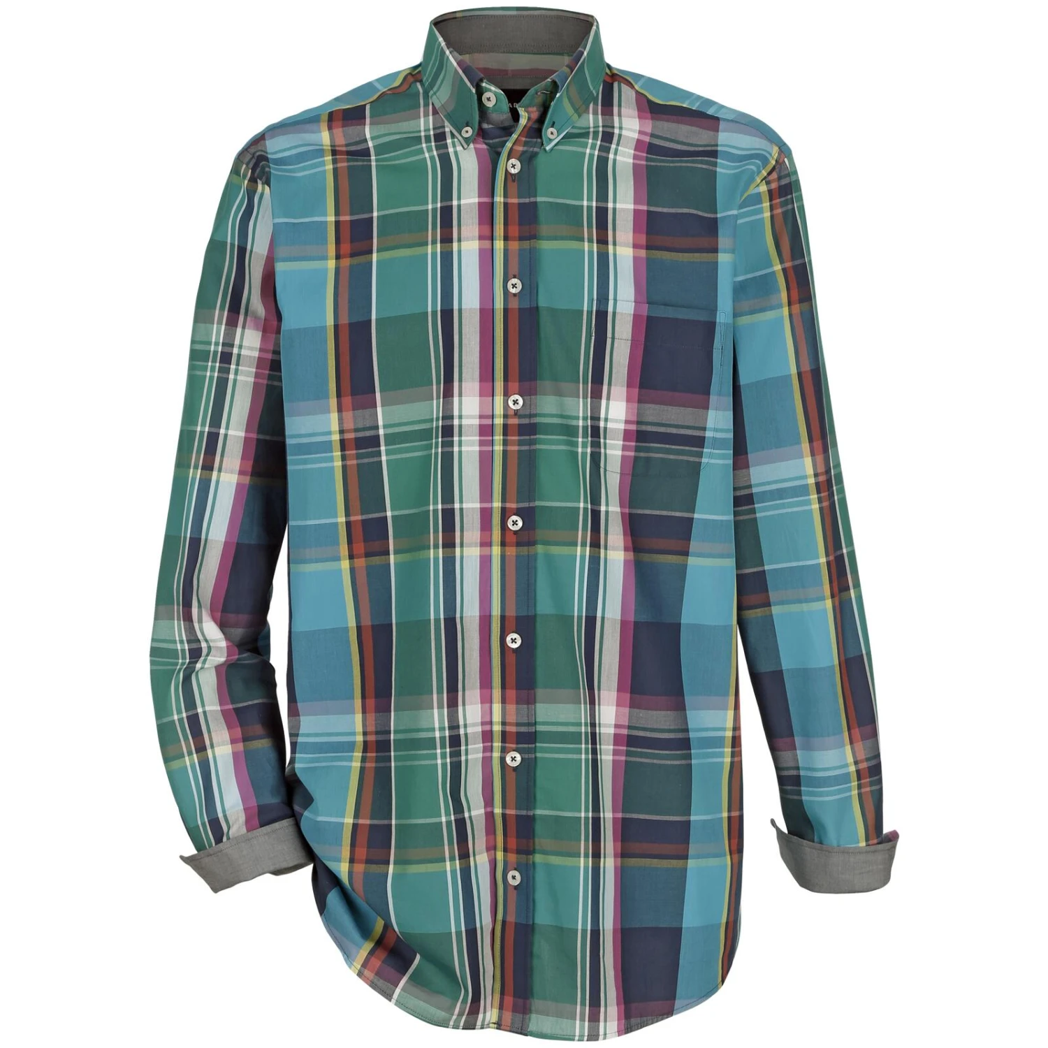 Erweitere deinen Kleiderschrank mit diesem stilvollen Hemd. Es kommt mit einem Button-Down-Kragen und ist mit charakteristischen ‚Babista‘-Knöpfen versehen. Eine nützliche Brusttasche ist ebenso enthalten. Die Armabschlüsse sind individuell verstellbar, mit zwei Knöpfen ausgestattet. Das Inlay an Kragen, Innenmanschette und Nackendreieck zeichnet sich durch einen schicken Webbesatz aus. Der Saum ist leicht abgerundet für einen modernen Look. Aus reiner Baumwolle gefertigt, unterstützt dieses Hemd einen hohen Tragekomfort. Pflegeleicht in der Maschine zu reinigen.