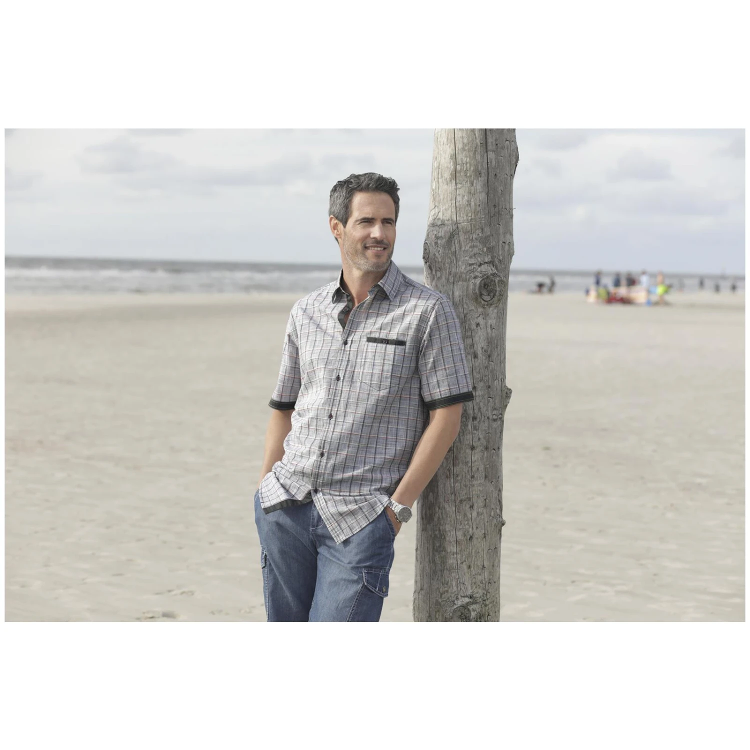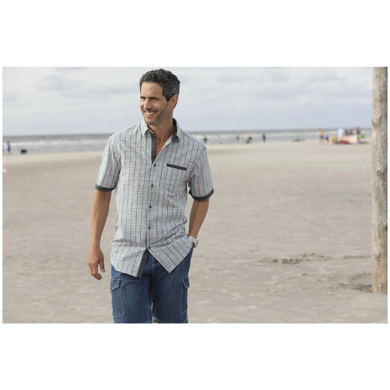 Entdecken Sie GIDONA – ein Hemd, das Funktionalität mit modischem Flair verbindet. Dieses Hemd zeichnet sich durch eine klassische Knopfleiste, eine praktische Brusttasche und einen elegant abgerundeten Saum aus, der für einen modernen Look sorgt. Gefertigt aus reiner Baumwolle, besticht GIDONA durch eine luftdurchlässige Verarbeitung, die es zum idealen Begleiter an warmen Tagen macht. Das garngefärbte Karomuster verleiht dem Hemd eine dynamische Note, während die kontrastfarbenen Akzente für einen aufsehenerregenden Stil sorgen. Perfekt für den Mann, der sowohl Komfort als auch trendiges Design schätzt, ist GIDONA eine hervorragende Wahl für jeden Anlass.