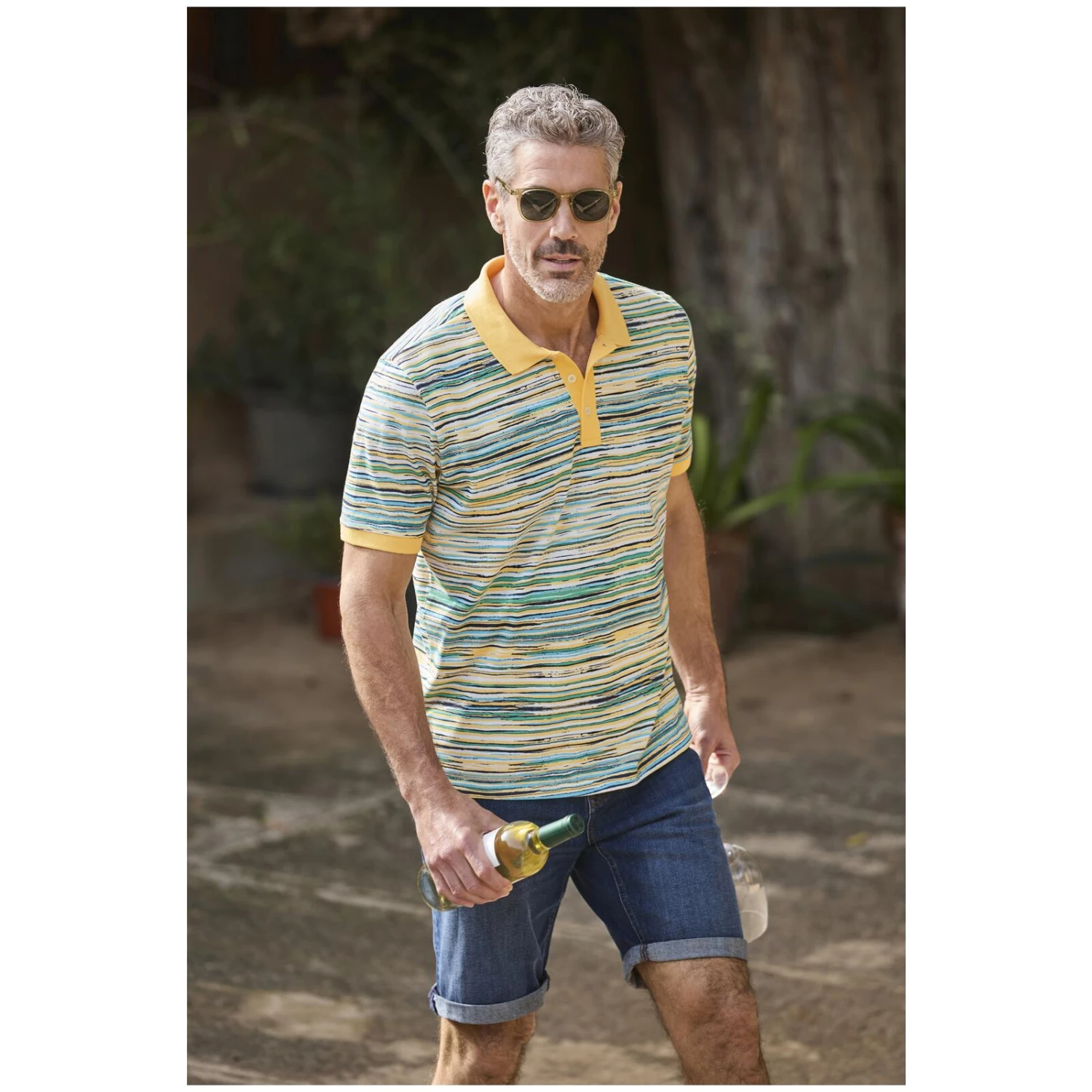 Mit diesem Oberteil zieht gute Laune in Ihren Kleiderschrank: Poloshirt MONZIO ist ein sportlicher und frisch aussehender Traum von einem Freizeitteil. Der dynamische Polokragen bringt Schwung in all Ihre Unternehmungen, während die Seitenschlitze Ihnen Bewegungsfreiheit bieten. Das Highlight ist aber das Muster in mehreren strahlenden Farben sowie die gekonnt gesetzten Kontraste am Kragen und den Ärmelbündchen. Eine kleine Markenflag an der Seite setzt dem fröhlichen Design den Partyhut auf. Also worauf noch warten? Mit Poloshirt MONZIO scheint jeden Tag die Sonne.