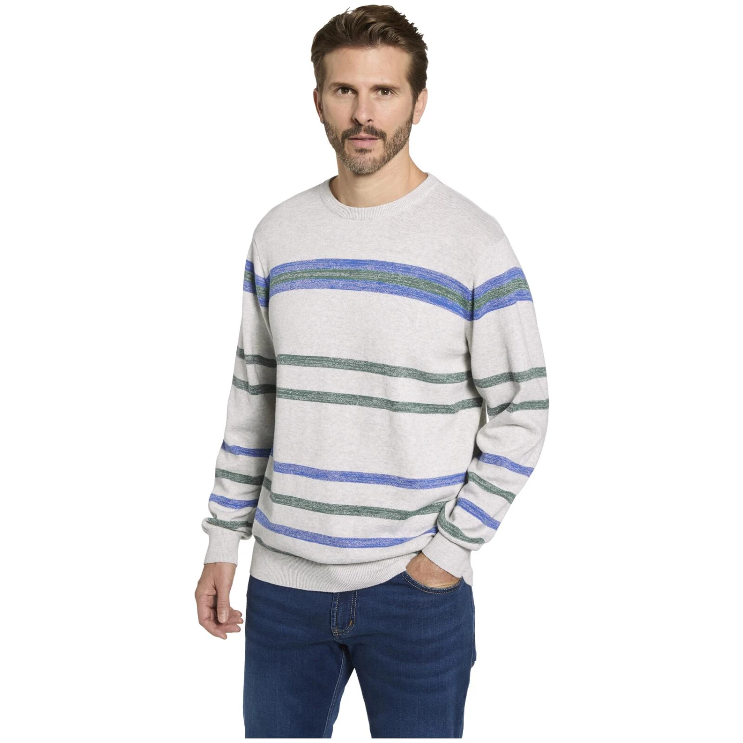 Pullover AVENELLO ist einfach die perfekte Wahl für Ihren gepflegten Freizeitlook. Der zurückhaltende Rundhalsausschnitt und das stilvolle Muster aus mehrfarbigen Streifen sorgen zusammen für eine zeitlose Optik. Die elastischen Bündchen am Saum und an den Ärmeln bieten Ihnen einen angenehmen Tragekomfort, sodass Sie nicht nur großartig aussehen, sondern es auch noch absolut bequem haben. Mit dem fröhlichen Farbspiel von Pullover AVENELLO können Sie sich eines geschmackvollen Auftritts also gewiss sein.