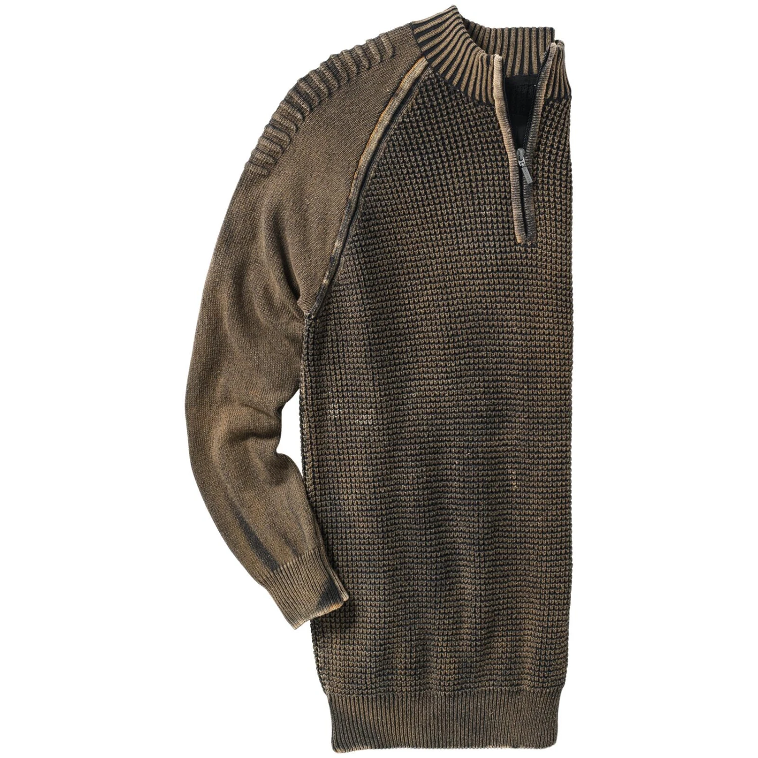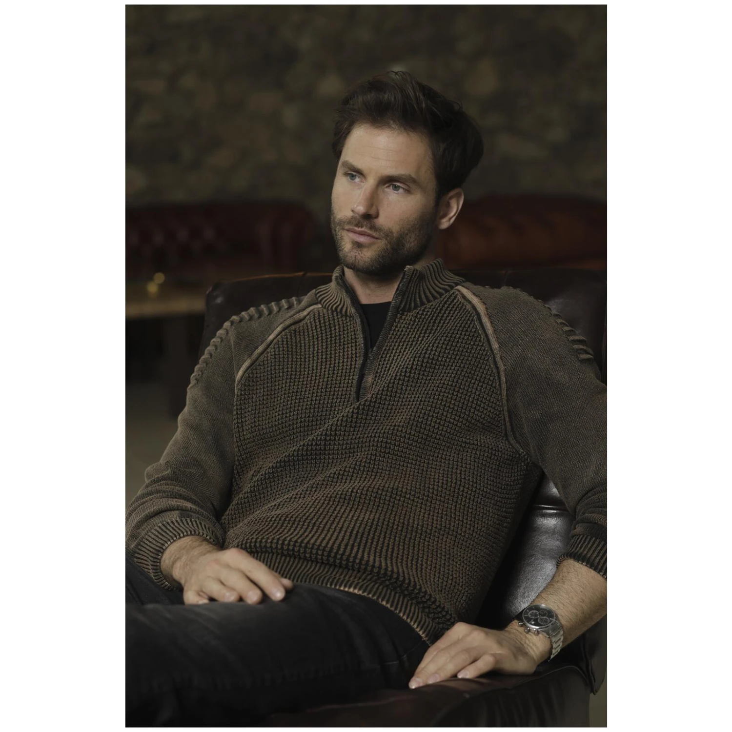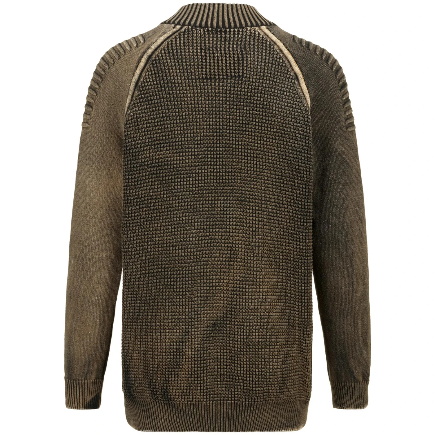 Der modische Pullover TILZIANO zeichnet sich durch eine spezielle Moon-Wash-Technik aus, bekannt durch ihre Verwendung bei Jeans. Diese Methode verleiht dem Pulli einen einzigartigen Vintage-Look, indem sie helle und dunkle Farbschattierungen hervorhebt. In Kombination mit dem Strukturstrick ergibt sich daraus ein unverwechselbares Stück. Zudem macht das Baumwollmaterial es extrem weich und komfortabel. Ein Stehkragen mit verstecktem Reißverschluss rundet das Design ab. Dank elastischer Bündchen an Ärmelenden und Bund hat der Pulli eine tolle Passform. Das BABISTA-Emblem am Bund fügt einen markanten Touch hinzu. Damit ist TILZIANO ideal für kühle Tage.