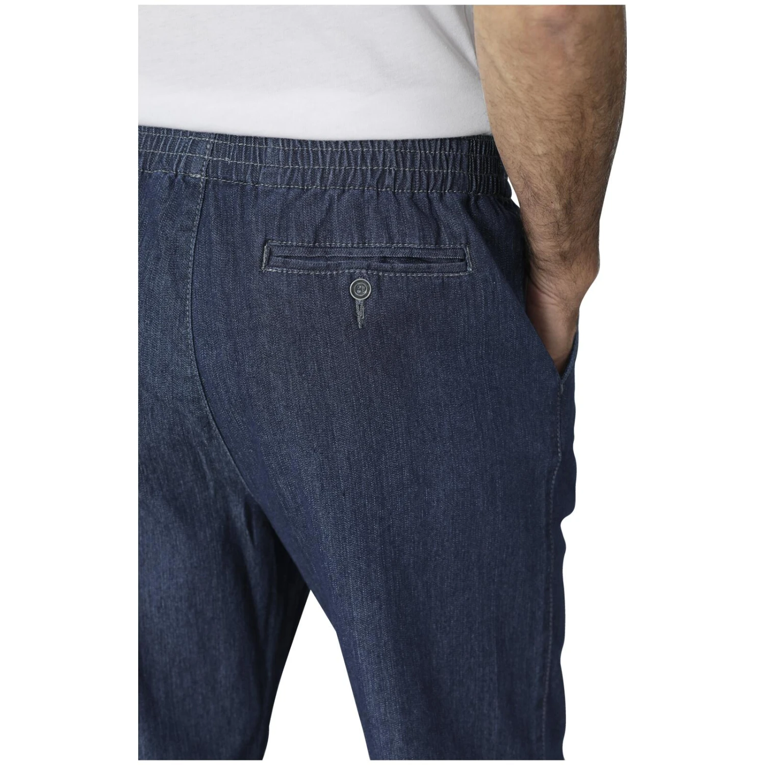 Die Jeans VIENTTO bietet Tragekomfort durch einen elastischen Rundumgummizug. Sie verfügt über zwei praktische Seitentaschen und eine Gesäßtasche, welche mit einem Knopf versehen ist. Sie besteht aus einer hochwertigen Denim-Mischung, die sie robust und pflegeleicht macht. Damit ist Schlupfjeans VIENTTO die perfekte Wahl für einen modischen Alltag voller Komfort.