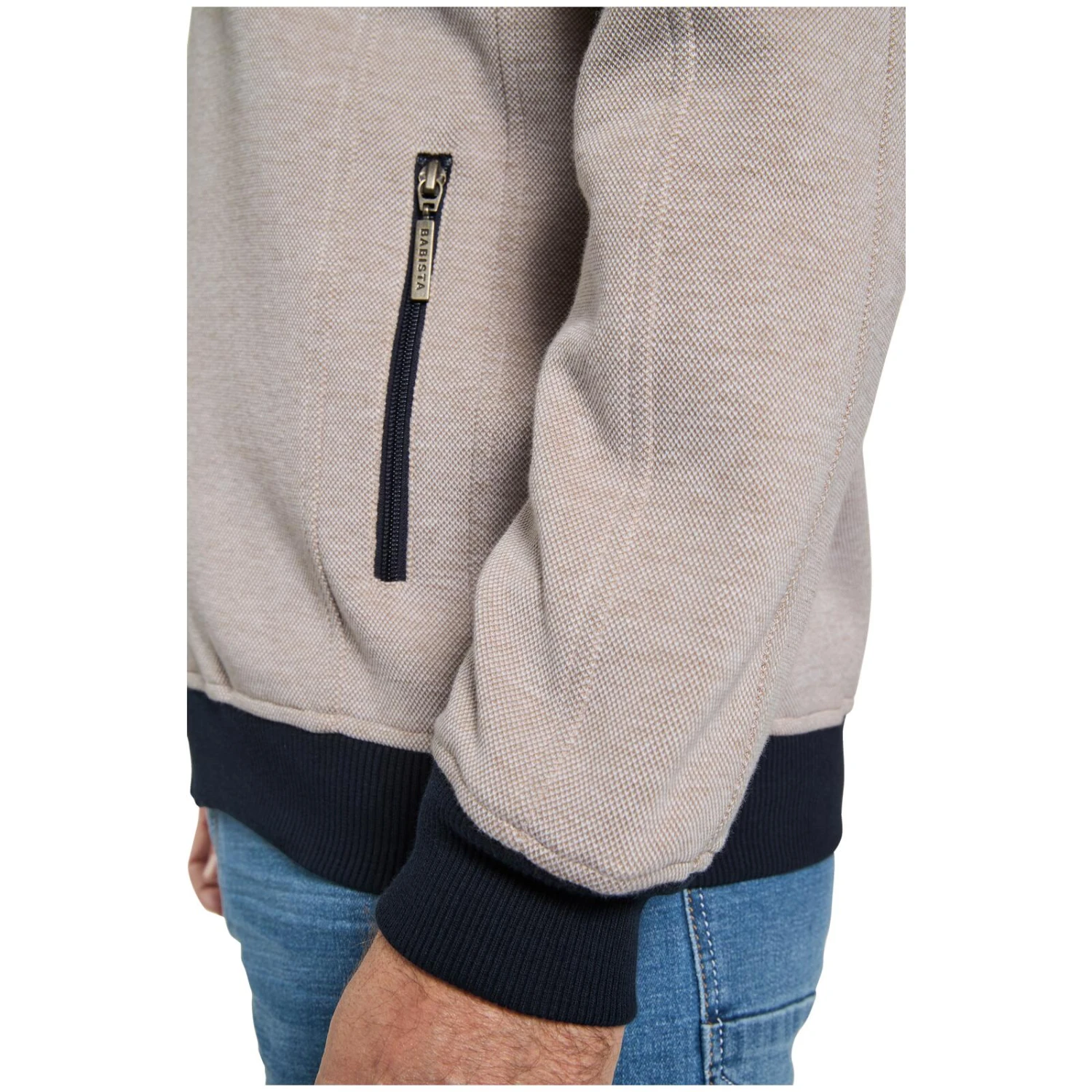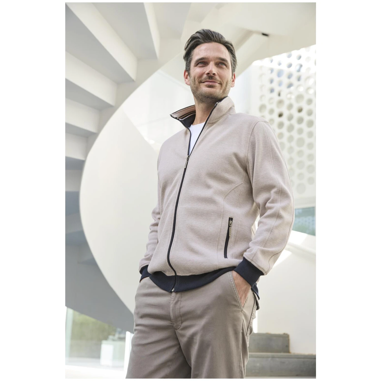Lässige Sweatjacke, aber im gepflegten Look? Klingt nach NOVIELLA. Die modische Jacke hat einen raffinierten Umlegekragen mit Kontrastnähten, der als sportlicher Stehkragen oder locker offen getragen werden kann. Ein unkomplizierter Reißverschluss sorgt dafür, dass NOVIELLA ganz einfach drübergezogen werden kann, wenn es kühler wird. In den zwei Reißverschlusstaschen können allerhand Kleinigkeiten verstaut werden. Elastische Säume machen das Oberteil schön bequem. Ein Hingucker ist auch die Oberflächenstruktur, die dem Design abschließend die Krone aufsetzt. In NOVIELLA sind Sie damit für die Herausforderungen Ihrer Freizeit gewappnet.