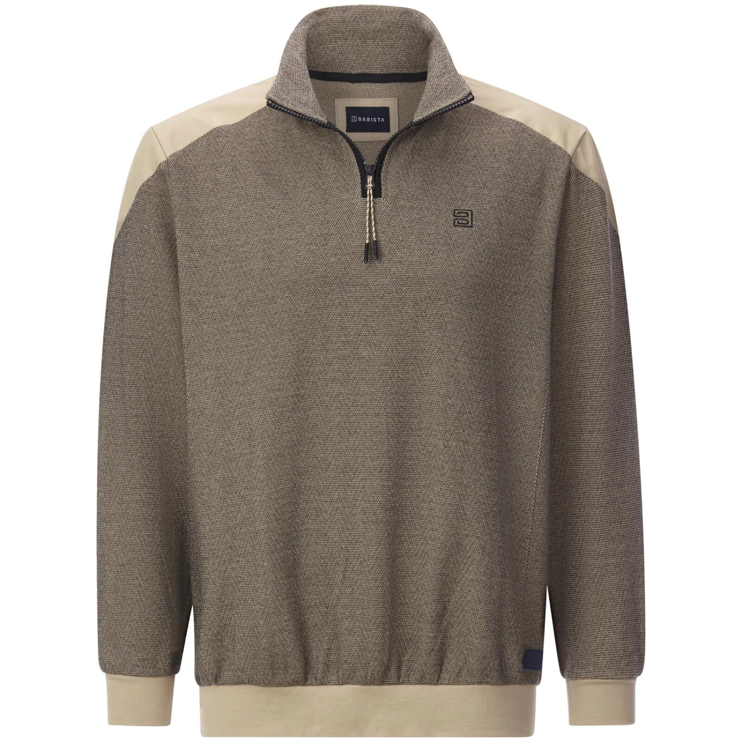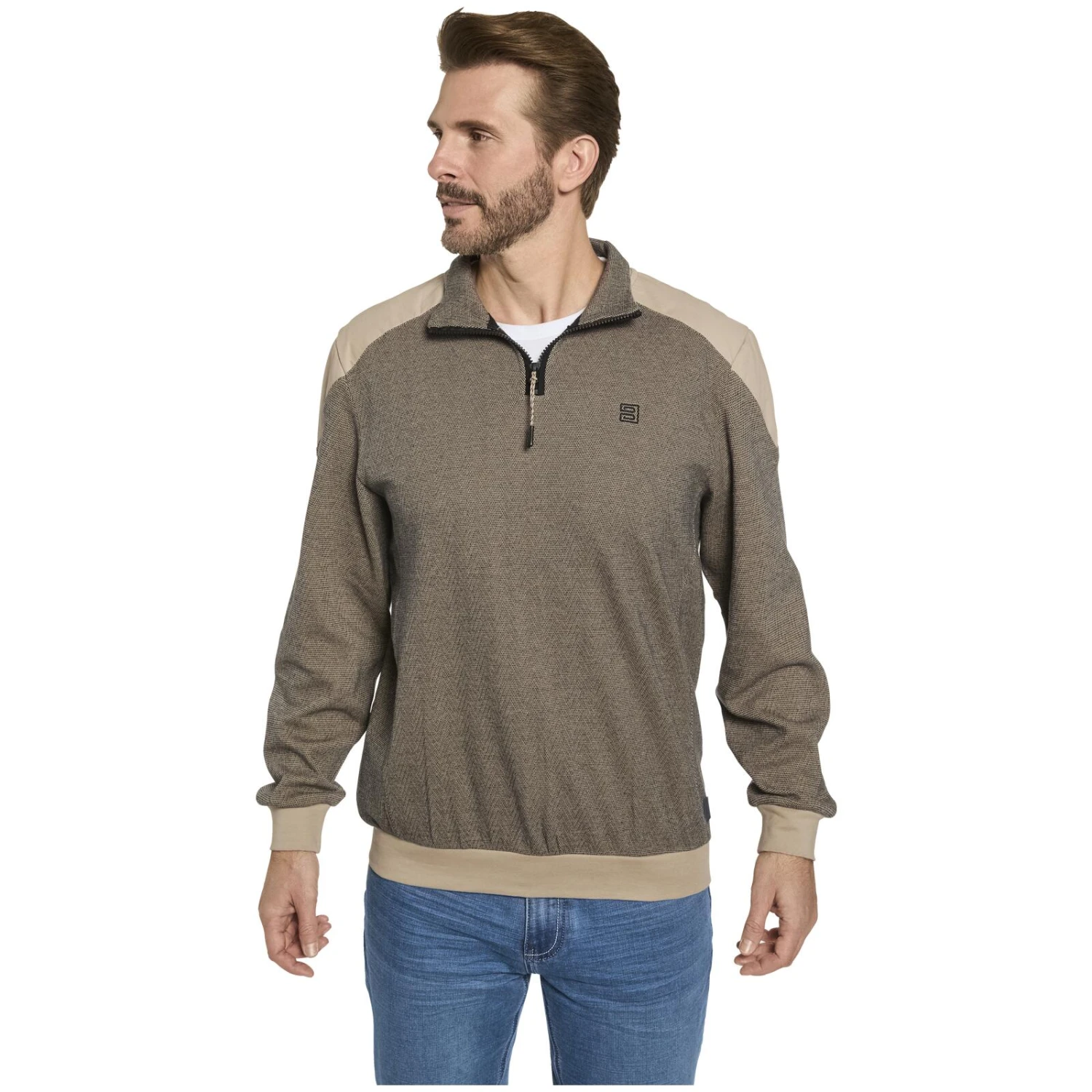 Sweatshirt MODATERRA versprüht gleich auf den ersten Blick eine Menge italienischen Stil. Das Shirt hat einen umschlagbaren Troyer-Kragen mit Reißverschluss, der lässig offen getragen werden oder auch den Hals vor Wind schützen kann. Elastische Bündchen an Saum und Ärmeln sorgen für einen angenehm hohen Tragekomfort. Kontraste an Bündchen und Schultern bringen Schwung in das Design. Eine Stickerei auf der linken Brust rundet die elegante Optik hochwertig ab. In Sweatshirt MODATERRA sind Sie also zu jeder Zeit bequem und stilvoll unterwegs.