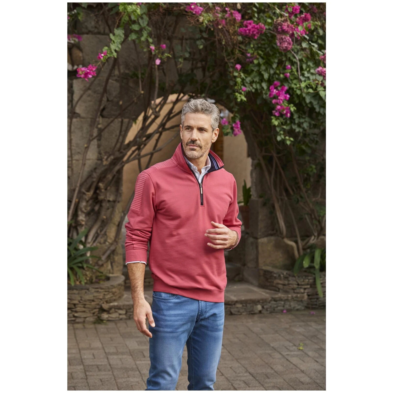 Ein frischer Look für sonnige Stunden im Grünen – den können Sie mit Sweatshirt MODAVERA haben. Das modische Shirt zaubert Ihnen mit seinem Reißverschluss am umschlagbaren Stehkragen ein modernes und junges Auftreten bei legeren Anlässen unter freiem Himmel. Die gerippten Details an den Schultern verleihen Ihrem Outfit eine dynamische Note, während die elastischen Bündchen an Saum und Ärmeln das Oberteil unvergleichlich bequem machen. So wappnet Sie Sweatshirt MODAVERA für stilvolle Stunden in der Freizeit.