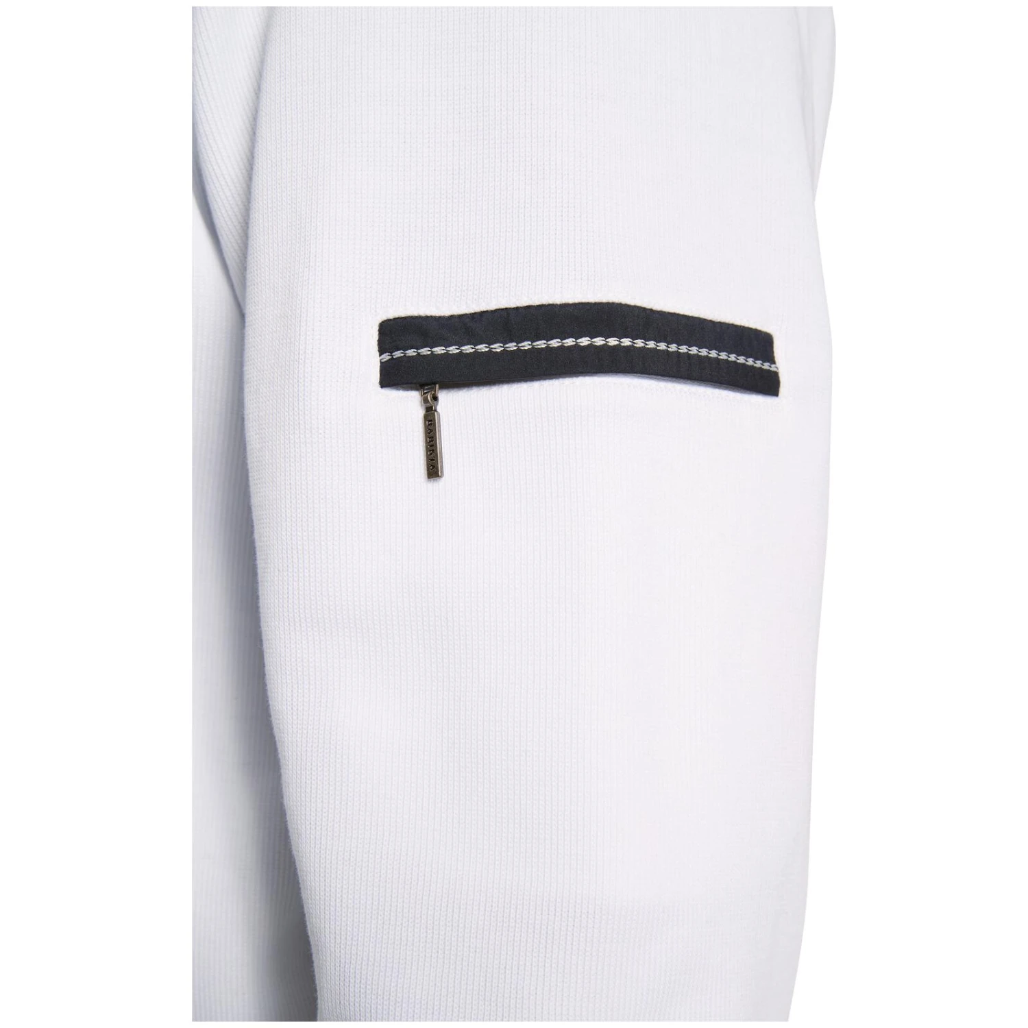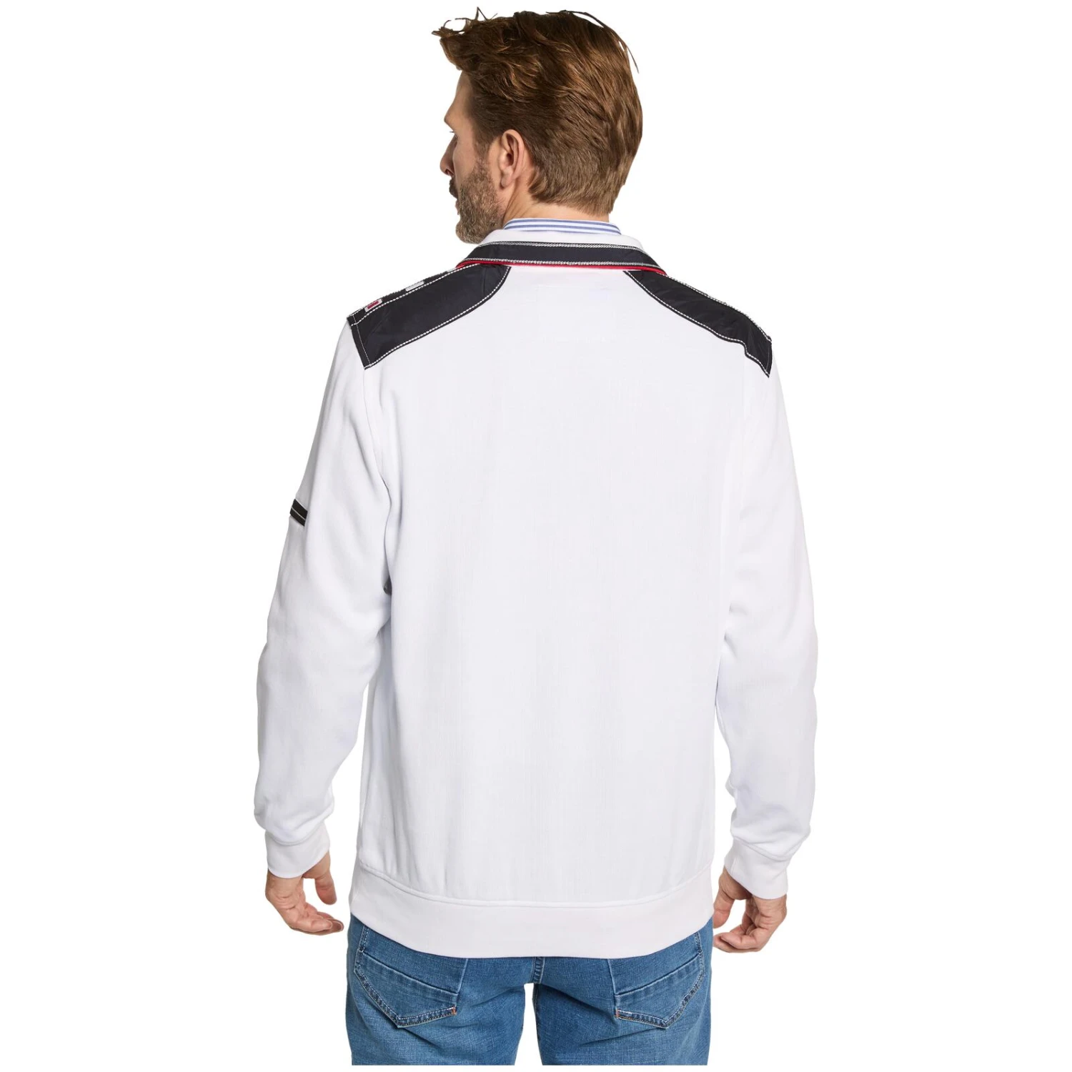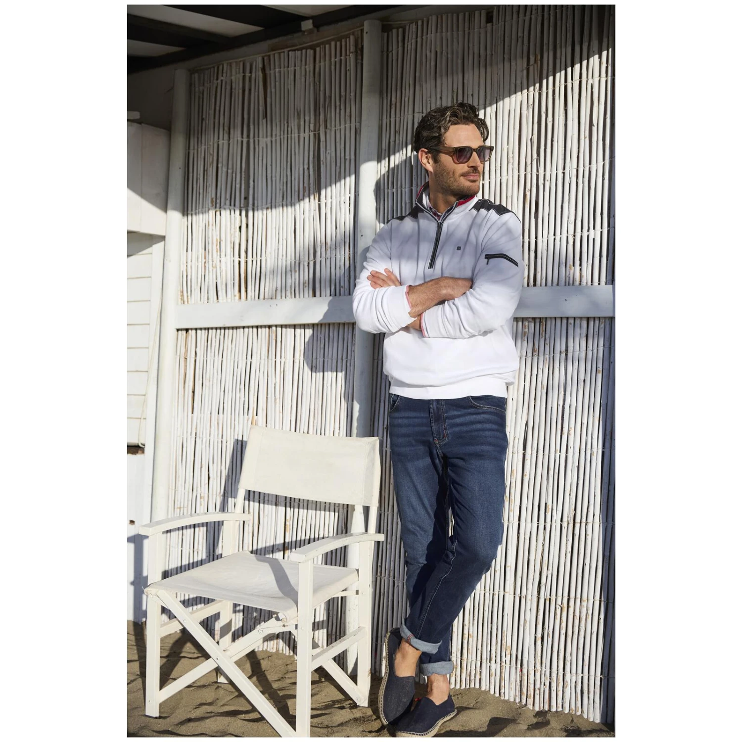 Sweatshirt MODAVERDE ist genau das Richtige für alle gepflegten Seemänner da draußen. Der Umlegekragen mit dem Reißverschluss erweckt einen dynamischen Eindruck, der durch die praktische Tasche am Ärmel noch verstärkt wird. Geschmackvolle Kontraste, die auch vor der feinen Stickerei auf der Brust nicht Halt machen, lassen MODAVERDE absolut maritim aussehen. Elastische Bündchen an den Ärmeln und am Saum garantieren einen hohen Tragekomfort und angenehme Bewegungsfreiheit für Ihre Fahrt zur See. Mit Sweatshirt MODAVERDE heißt es also: Leinen los!