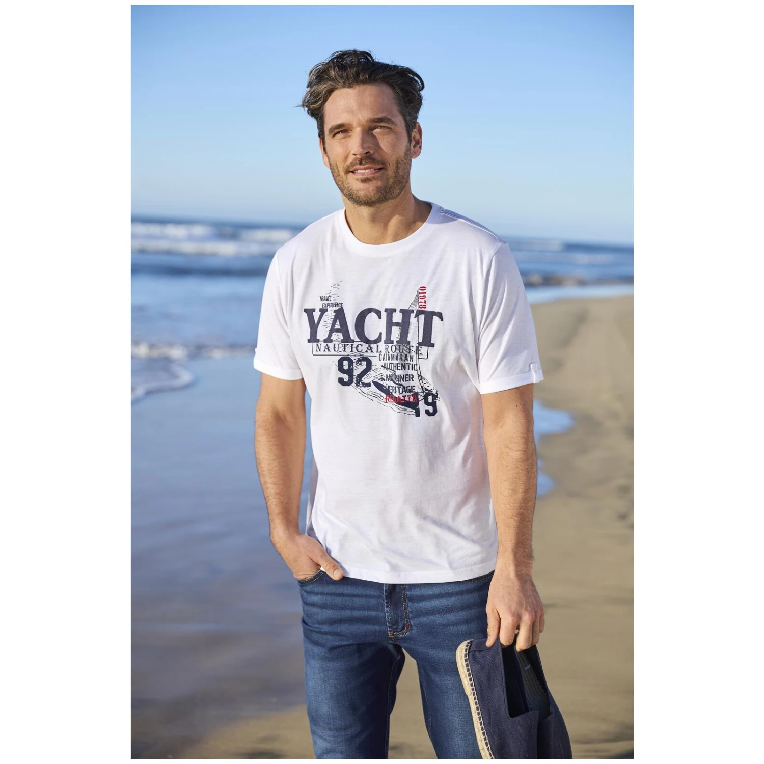 Bereit für eine Ausfahrt auf Ihrer Yacht in T-Shirt MODARI? Das moderne Shirt mit maritimem Print ist wie gemacht dafür, im strahlenden Sonnenschein die Weiten des Meeres zu erkunden. Der klassische Rundhalsausschnitt gibt noch mehr Raum zur Entfaltung des nautischen Looks. Die dezenten Kontrastnähte an den Schultern fügen sich harmonisch ins Gesamtbild ein und verstärken den Eindruck eines perfekten Teils für alle, die den unendlichen Ozean lieben. Also machen Sie sich bereit für entspannte Stunden auf dem Wasser, denn mit T-Shirt MODARI heißt es: Willkommen an Bord!