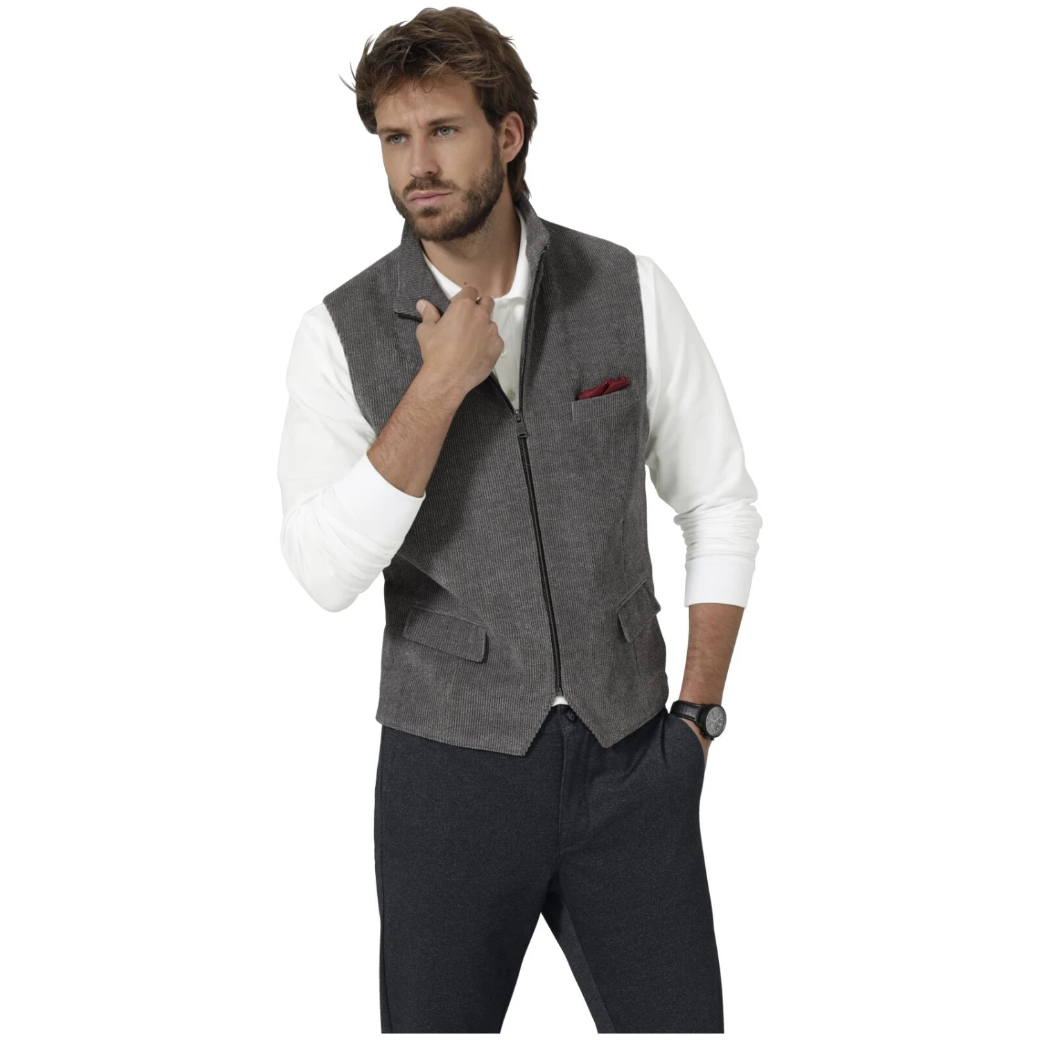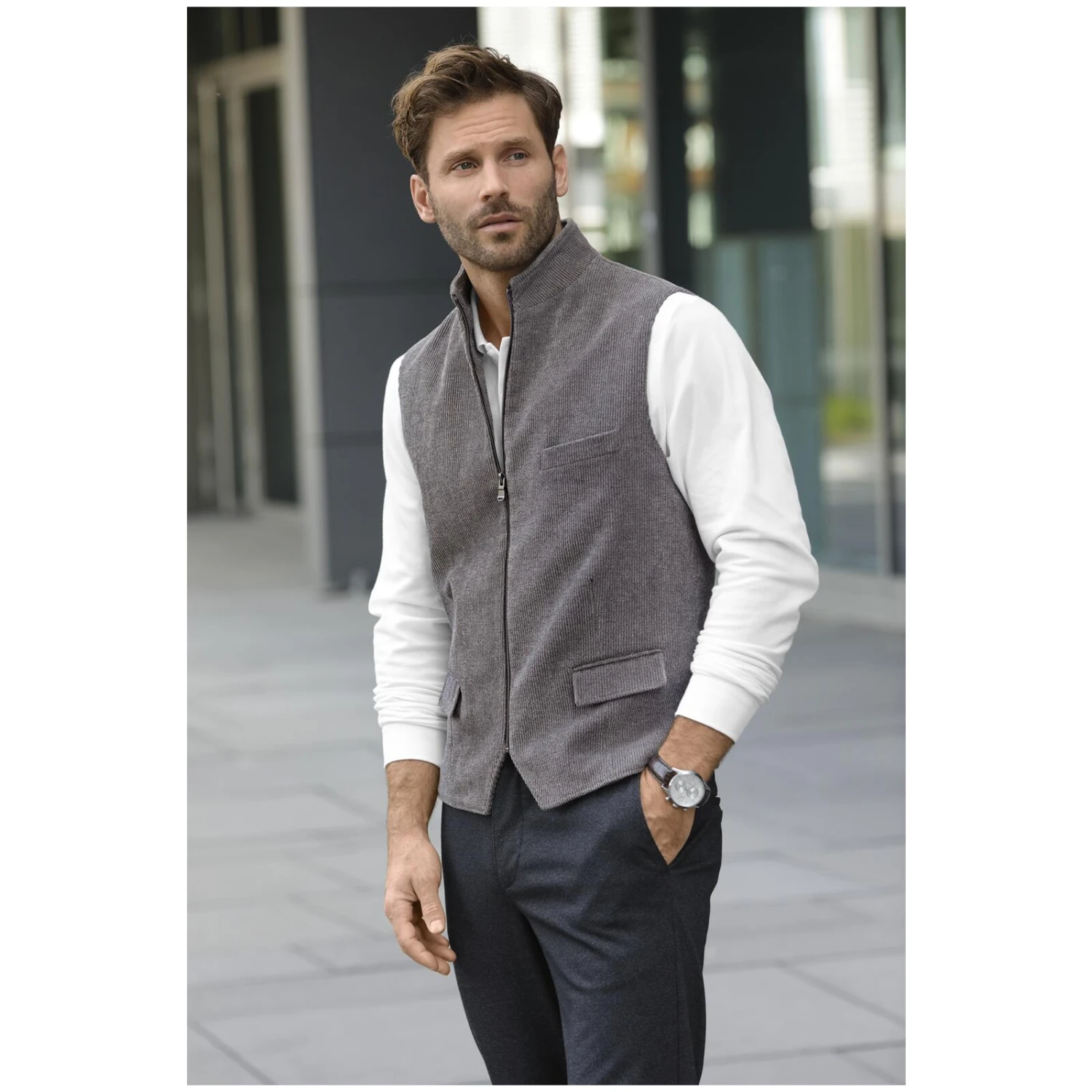 Mit Cordweste VIVIENZO fühlen Sie sich für fast jede alltägliche Begebenheit gut ausgerüstet. Sie erlaubt das sichere Verstauen essenzieller Kleinigkeiten dank einer Brust- und Pattentasche. Das gerade Design der Weste garantiert angenehmen Tragekomfort. Weiterhin ist sie mit einem leichten Futter versehen, welches das An- und Ausziehen erleichtert. Das pflegeleichte und robuste Material dieser Weste wird Sie ebenso beeindrucken. Mit VIVIENZO ist Ihnen ein geschmackvoller Auftritt garantiert.